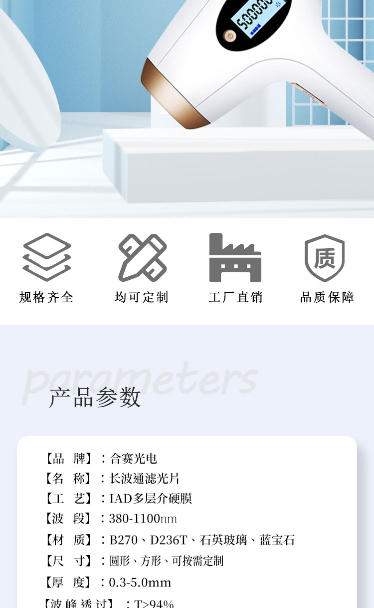 脱毛仪滤光片 祛斑 祛痘 祛红血丝 嫩肤美容仪器 合赛